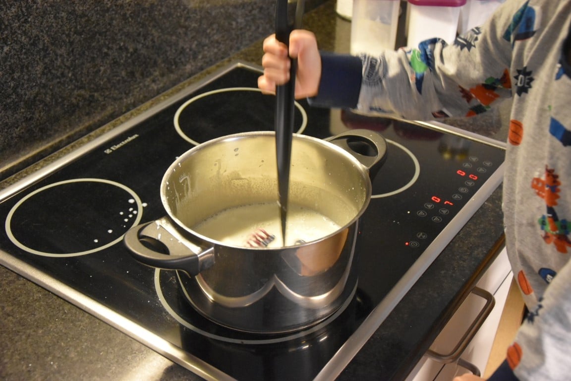 Portate a 85°C per 2 minuti per far agire la farina di semi di carrube e per pastorizzare la miscela, dopodichè aggiungete le castagne precotte, abbassate il fuoco al minimo e lasciate ammorbidire qualche minuto le castagne, poi frullate tutto e lasciate maturare in frigorifero 6-8 ore.